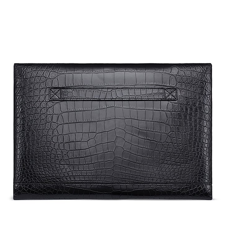 The rich texture of genuine alligator skin gives each piece a unique grain pattern, while the full-grain Italian leather lining enhances durability and refinement. Designed for minimal bulk and maximum style, it’s the perfect alternative to traditional briefcases when you want to travel light without compromising elegance.