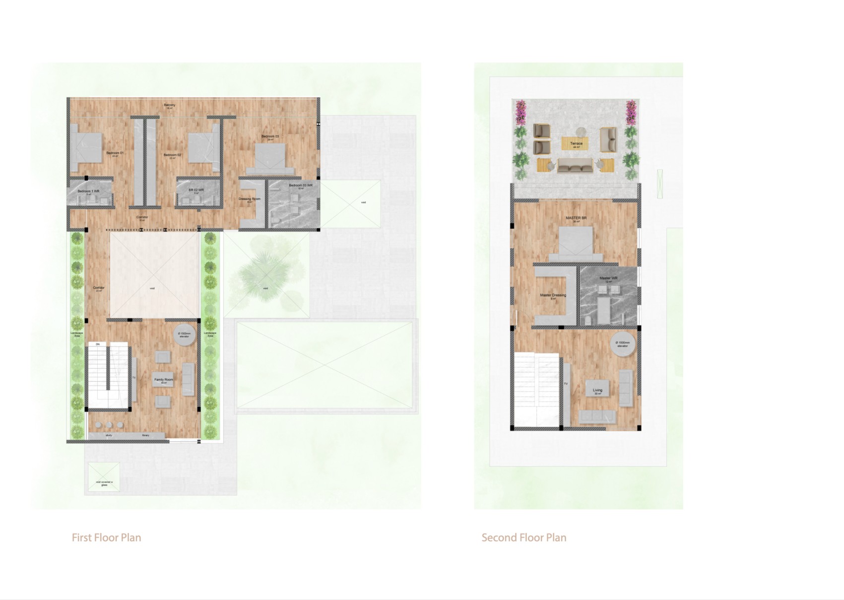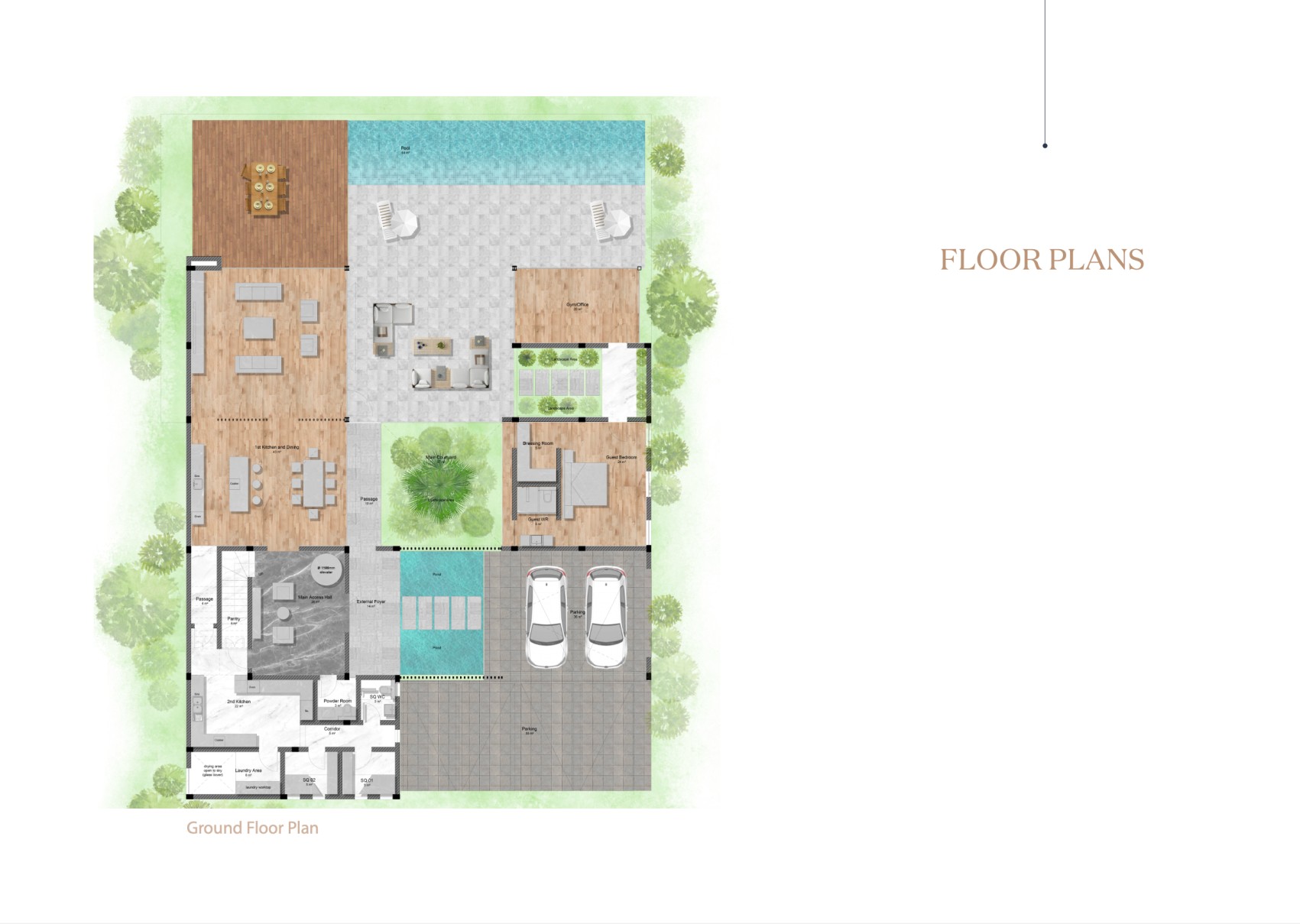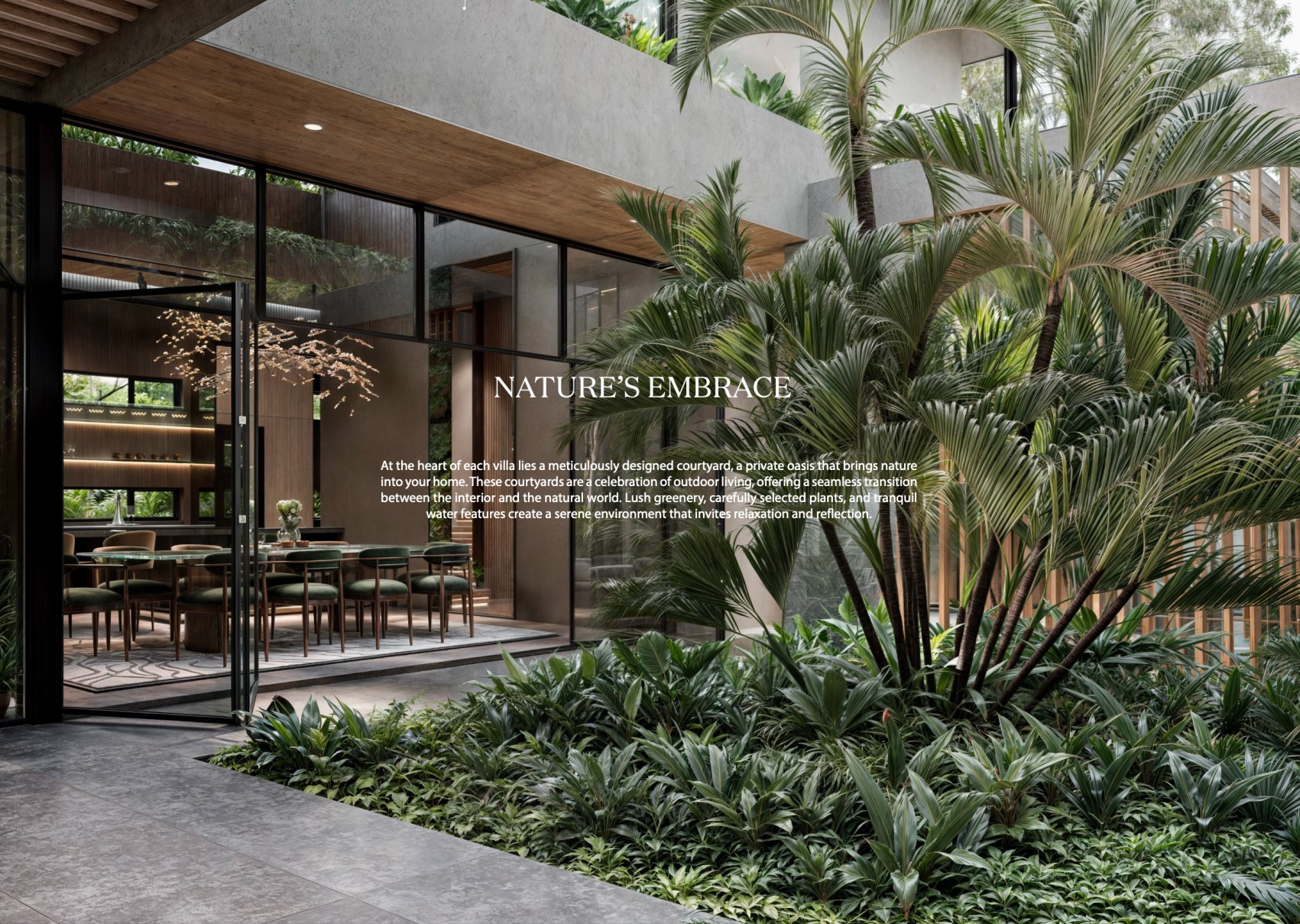 Each villa is a masterpiece of spatial harmony and natural elegance, anchored by a central private courtyard—an intimate oasis where curated greenery, water features, and open skies converge. These serene spaces offer a seamless flow between interior sophistication and the organic beauty of the outdoors.